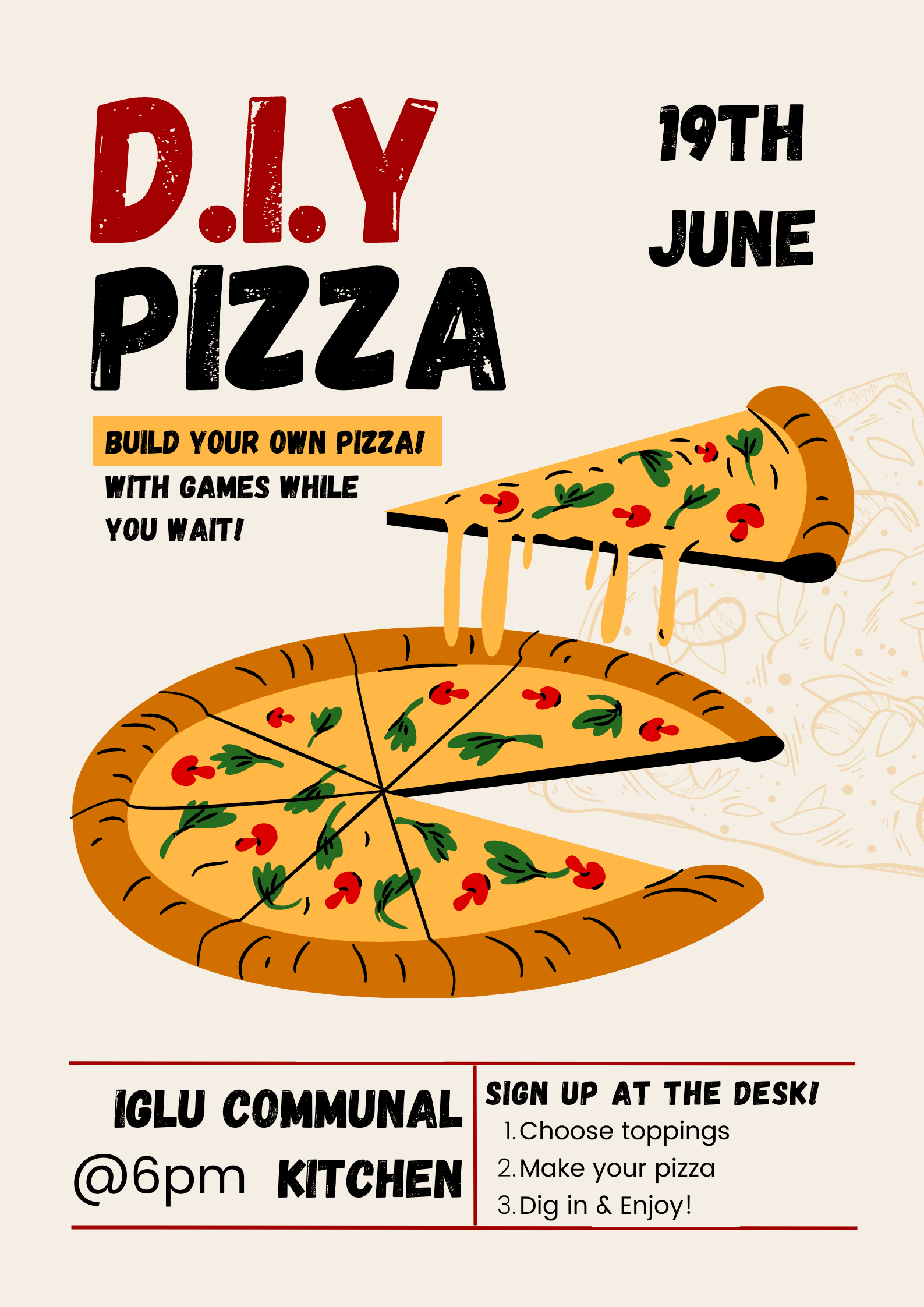 The best thing about pizza is how customizable it is! Make sure you sign up to this event, where RL Michaela is giving you the opportunity to create the wildest pizzas of your dreams. Buon appetito!