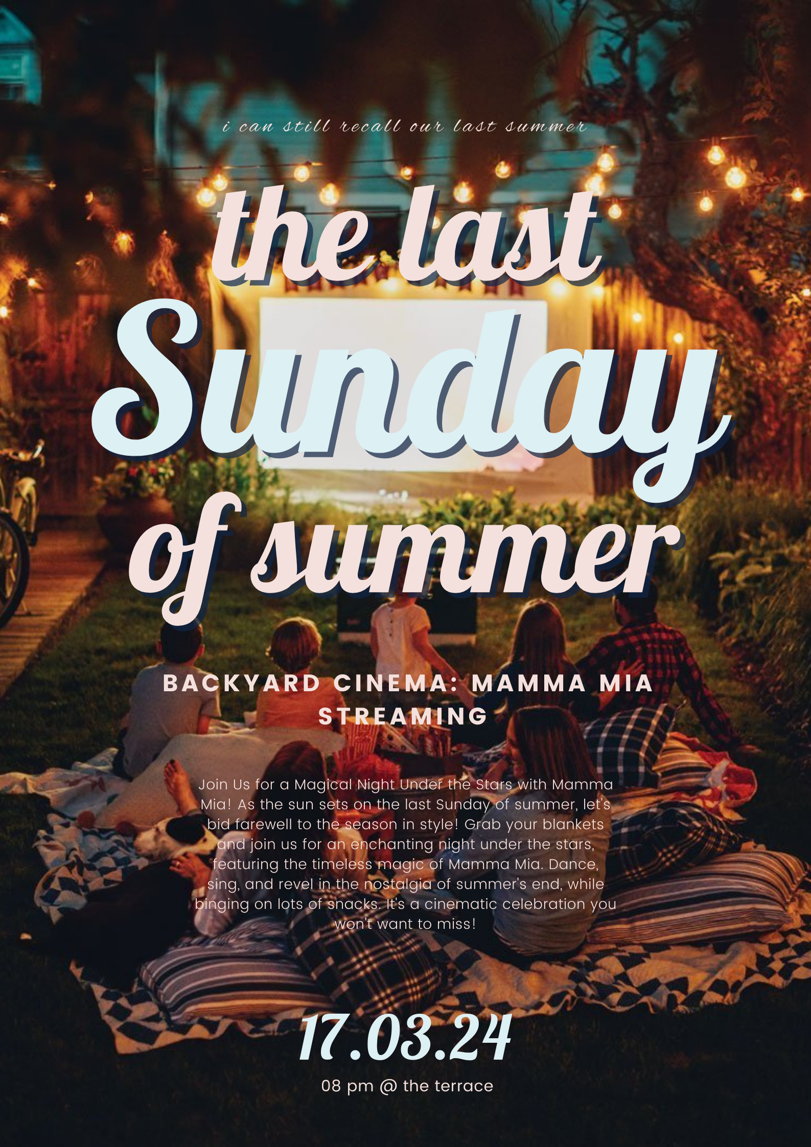 Join us for a night under the starts with Mamma Mia on the last Sunday of summer!