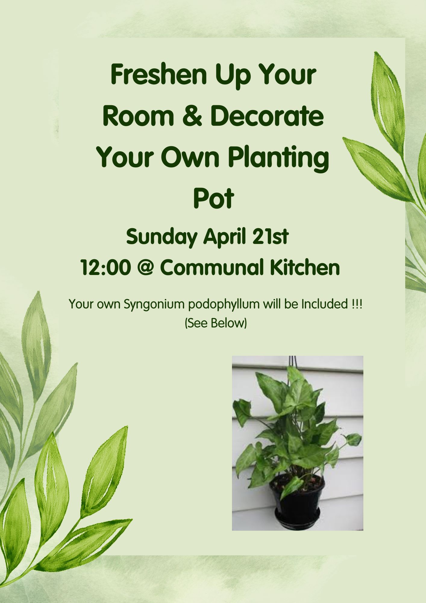 Come decorate your own pot plants and enjoy your very own plant to take to your room 🙂