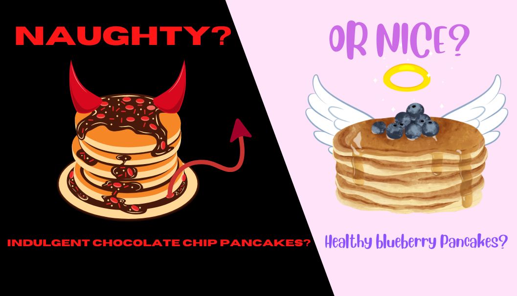 This week’s special breakfast is your choice! Choose between naughty – indulgent chocolate chip pancakes, or nice – healthy blueberry pancakes. See you there!